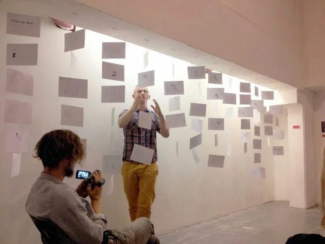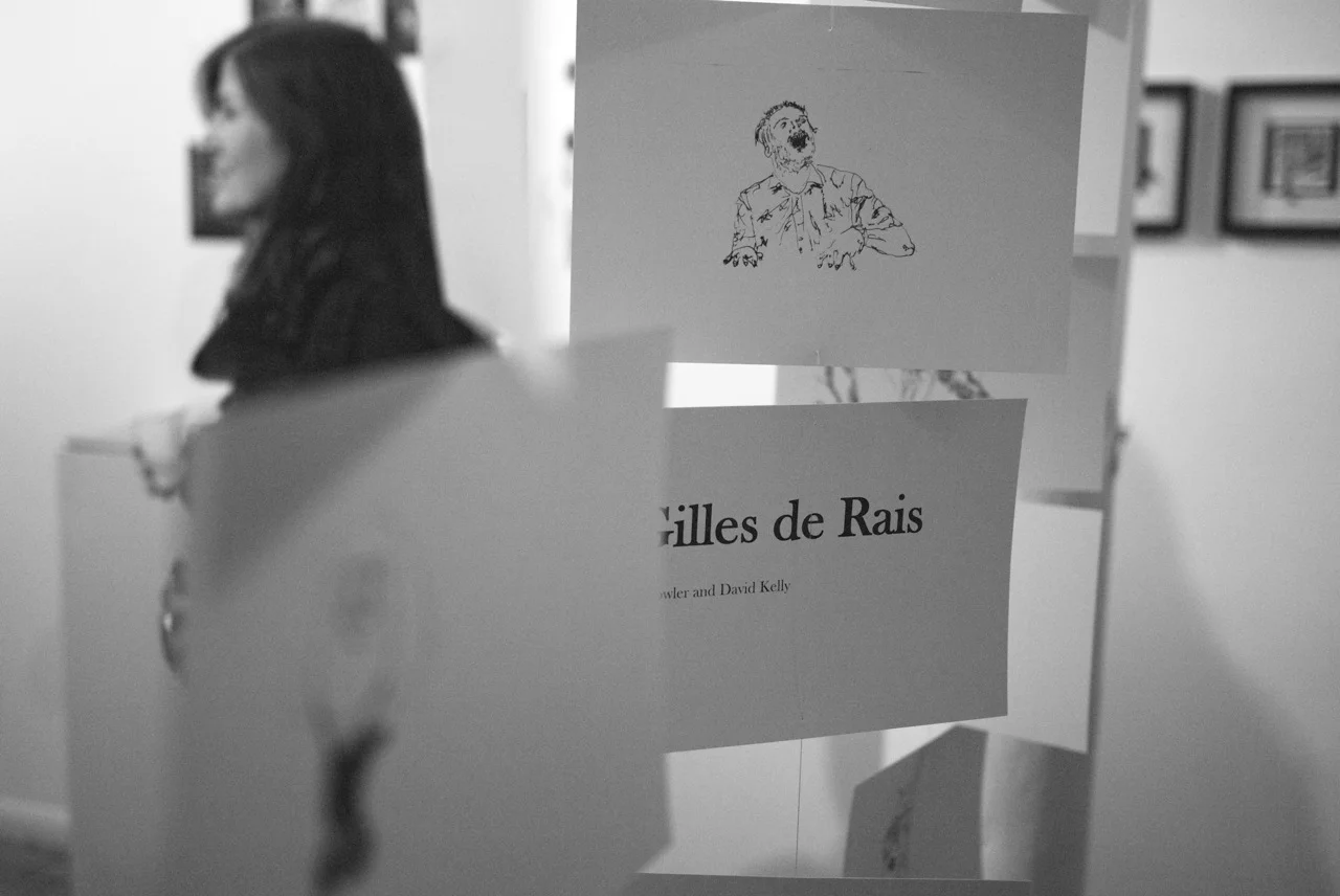 Gilles de Rais is an interchangeable narrative reflection on the life and legend of Gilles de Rais, this fusion of avant garde poetry and modernist line drawing aims to satirise and subvert the manner in which the monstrous myth surrounding such de Rais is echoed in our own time by Jimmy Saville. This is the disjunctive folklore of idiot's resounding through the ages, from 15th century France to 21st century Britain.